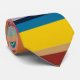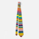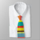 Cette cravate a un design de rayures horizontales dans les tons bleu, vert, marron, violet, rouge, jaune, orange et rose.