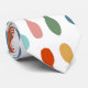 Cette cravate a un design moderne du milieu du siècle de cercles et ovales tendus ensemble dans des couleurs rétro entrecoupés sur un champ de blanc.
