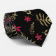 Cravate Belles fleurs rouges doré brillant feuille noir el
