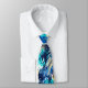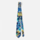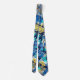 Cravate Bleu Nuit Aqua Jaune Blanc Plantes Tropicales