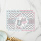 Copie grise et blanche chic de chevron avec le rose et le contraste bleu et un pullover mignon de point de polka avec une cravate bleue et un tutu et un arc 3D-look et un ruban roses pour des jumeaux garçon et le carte de remerciements de fille.