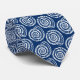 Cravate dans un motif d'impression en bloc, basé sur un coquillage en spirale, en blanc sur un arrière - plan bleu cobalt