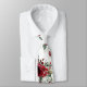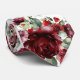 Un cravate mariage bordeaux et blanc avec des pivoines rouges aquarellées avec une végétation argentée sur un arrière - plan blanc pur.