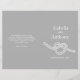 Dessin simple en blanc et gris d'un programme de mariage en forme de coeur. Moderne design mariage de style simple et à la mode partie de l'amour noeud mariage stationnaire . Modifiez ce programme de mariage avec votre nom, dates, libellé de la cérémonie, accompagnateurs de mariage et merci. Un programme simple mais élégant remplace simplement l'exemple de texte par vos informations de mariage et plie les programmes en deux à la livraison. Un programme de mariage parfait pour un simple mariage moderne pour montrer votre union et votre unité. Dessin unique et design par Sarah Trett.