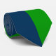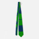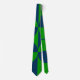 Cette cravate a un design Bauhaus de carrés et cercles en bleu et vert.