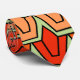 Cette cravate a un design art déco de tulipes de pentagones et trapézoïdes dans différentes nuances d'orange.