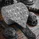 Ce design d'inspiration gothique s'inspire des charnières et cimetières d'Europe du Moyen-Âge. Les crânes s'entrelacent avec des vignes en pierre dans ce design hantant. L'avant et l'arrière présentent différents modèles rendant cette cravate réversible !