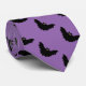 Tie à col violet, vêtement de tenue de soirée professionnelle et accessoire de mode casual avec image de chauve-souris noire dessinée par TheFabricSeal sur Zazzle est une chauve-souris noire solitaire mignonne et simple avec des couleurs d'arrière-plan orange Halloween et violet Halloween, illustration de style silhouette avec des yeux verts kaki et orange citrouille qui regardent autour pour des amis et des proies et une nuit sombre et cool d'Halloween d'aventure, de gobelins, de goules et de fantômes.