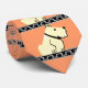 Cravate Chien d'art déco, noir+Clé grecque argentée+Saumon