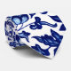 Cravate Chinois bleu marine foncé motif floral sur blanc
