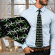 A black Christmas tie with white starfish. Rows of white starfish / sea stars and green holly leaves cover this tropical-themed holiday accessory. Perfect for the office or any special event.