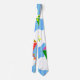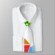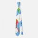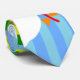 Cette cravate a un design géométrique de cerfs-volants volant dans les nuages d'un ciel rayé bleu. Il est très coloré et festif.