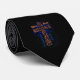 Une croix céleste de style grunge faite en orange et bleu, avec quelques textes écrits dans le style anglais ancien autour. Design intéressant pour ceux qui aiment les graphismes insolites!