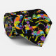 Ajoutez un look amusant et coloré à votre tenue avec cette cravate de caméléon. Cette cravate présente des illustrations de caméléons de style caricature mignonnes aux couleurs vives et vives de l'arc-en-ciel, dressées contre un arrière - plan noir.