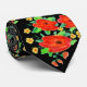 Cravate de déclaration moderne, habiller de cravate à fleurs rouges et audacieuses sur le noir avec des fleurs de moutarde dorée. Accessoire masculin élégant. l'arrière - plan noir peut être changé en n'importe quelle couleur.