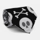 Cette cravate a une conception d'Halloween des crânes et des os croisés qui se répètent à travers le design.