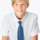 Une élégante cravate motif religieuse qui a comme motif une croix de faux feuille d'argent sur un arrière - plan bleu classique, recommandé pour la première communion ou la confirmation religieuse d'un garçon.