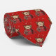 A tie with a cute drawing of a little kitten poking its head out of a gift box.