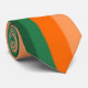 Cette cravate a un design Bauhaus de rayures dans les tons orange et turquoise.