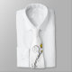 Cravate blanche avec chat noir élégant et design floral.