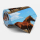Une jument et les chevaux de colt ont tiré dans un pâturage qui est lumineux et coloré avec une barrière, un ciel, et un nuage blanc qui est lumineux et coloré. C'est sur une CRAVATE.