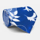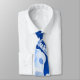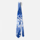 Une cravate moderne au design artistique en feuille bleue et blanche.