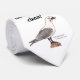 Un aquarelle et une peinture à l'encre d'un mouette à bec rouge sur un poteau en bois. Écrit à côté de l'image est "Aidez à garder nos plages propres !".