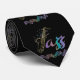 Cravate de jazz - cravate noire de notes de saxophone et de musique. Le jazz a orthographié avec les notes musicales d'un saxophone et d'arc-en-ciel en pastel coloré. Un grand cadeau pour votre joueur de saxo, musicien ou mélomane préféré.