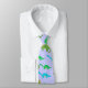 Un apatosaurus vert, un apatosaurus bleu, et un stegosaurus apparaissent à plusieurs reprises sur cette belle cravate.