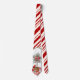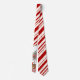 Joli cravate à rayures de menthe poivrée avec un design d'un topiaire de Noël, cardinal rouge, et cadeaux de Noël enveloppés.