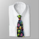 Ce cravate a des boules de cornichons vertes, jaunes, roses et bleues qui se fondent les unes dans les autres sur un arrière - plan noir.