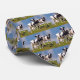 Cette cravate amusante montre un groupe de jeunes vaches Holstein au sommet d'une colline. La photo a été prise dans les îles des Açores (Portugal), où les vaches sont très communes dans le paysage.