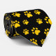 Cravate personnalisable pour des amoureux des animaux avec le motif drôle d'empreintes de pattes de chat et de chien sur le jaune et le noir. Vous pouvez le customiser et choisir une couleur différente d'arrière - plan.