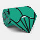 Cette cravate a un design art déco de diamants avec des lignes verticales, diagonales et courbes sur un champ de vert.