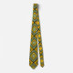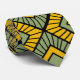 Cette cravate a un design art déco de formes diamant avec des lignes diagonales et des diamants colorés dans les tons vert et jaune.