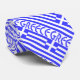 Le drapeau grec bleu et blanc disposé en diagonale. Chaque drapeau sur la cravate porte le mot "GRÈCE" sous le drapeau en lettres bleues.