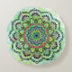 Des teintes vives de vert et de bleu, avec des touches de pourpre et de coeur rouge font de ce mandala un lieu unique.