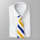 Cette cravate blanche, dorée et bleue à rayures diagonales possède à la fois une atmosphère ancienne et moderne.