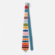 Cette cravate a un design moderne du milieu du siècle de lignes horizontales de couleur sur une ligne verticale noire avec des cercles.