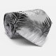 Cravate dans une impression tropicale de silhouettes de feuilles de palmier superposées, dans les tons gris / gris, noir et blanc, contre un arrière - plan gris / gris moyen