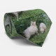 Cette cravate impressionnante présente une photo d'une paire de mignons moutons moelleux. Les moutons sont entourés de fleurs sauvages et d'herbe longue, et se tiennent sous un arbre et s'approchent, mangeant avec cupidité quelques feuilles. Ils ont des épais manteaux blancs en laine et des visages très mignons.