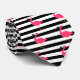 Cravate Flamant rose noir et blanc de rose de rayure