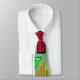 Cette cravate a un design de flèches dans différentes couleurs avec différents motifs sur eux.