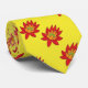 Fleur orangée et rouge sur motif arrière - plan jaune.