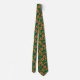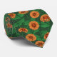 Cravate Fleurs Zinnia orange, feuilles verts sur vert fonc