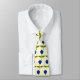 Cette cravate magnifique est recouverte d'images de marguerite avec pétales bleus et tige verte et feuilles, sur un arrière - plan jaune soleil.