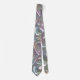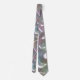 A funky necktie created with graphic art resembling an abstract, iridescent pattern with a pearly white luster and muted colors.