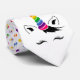 Le Cravate Glam Rainbow Unicorn conçu par Enchantfancy Design Company présente le contour du visage d'une licorne avec des cils glamour, des oreilles, une touffe de cheveux et une fabuleuse corne de licorne arc-en-ciel. Un motif d'étoiles arc-en-ciel met l'accent sur l'arrière - plan.