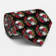 Une cravate avec une illustration de style goth. Belles roses rouges et feuilles d'or entourant un crâne noir et blanc.