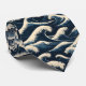Cravate Great Wave Hokusai Navy Blue Japanese Art Pattern